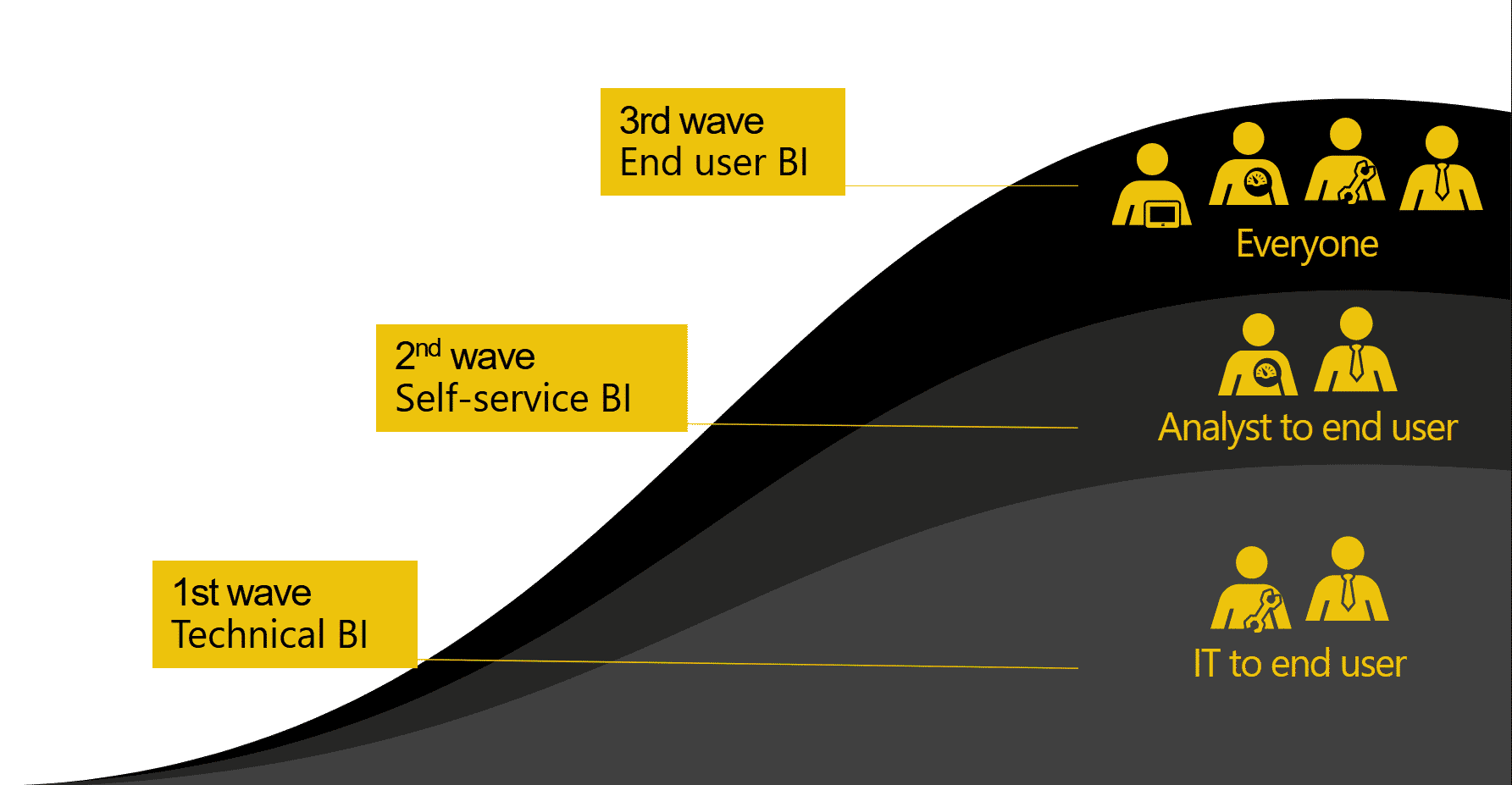 Das End User BI stellt die dritte "Welle" und das Ziel, auf das Microsoft hinarbeitet dar. Jedem Endanwender soll es möglich sein, Abfragen an die Daten zu stellen, ohne dafür technische Kenntnisse haben zu müssen.
